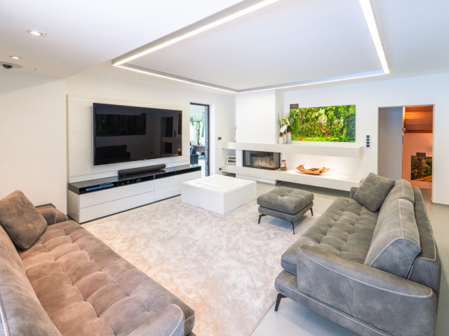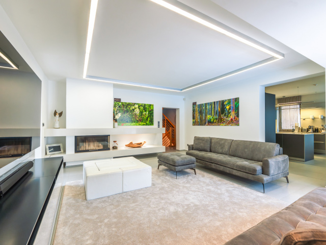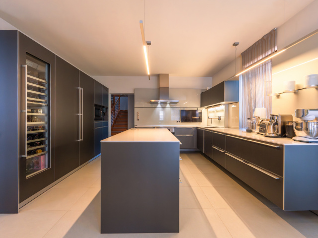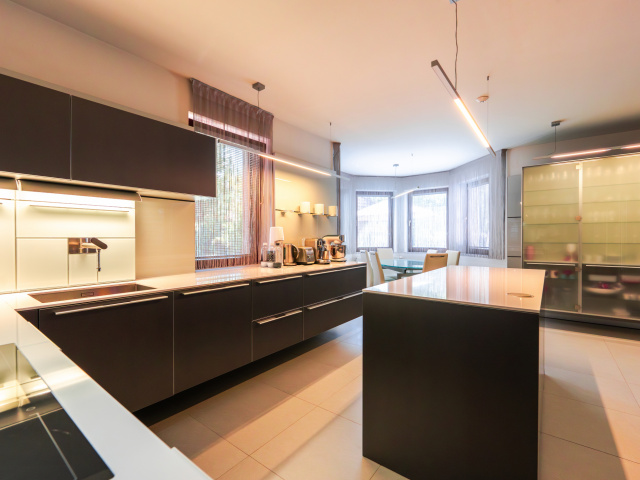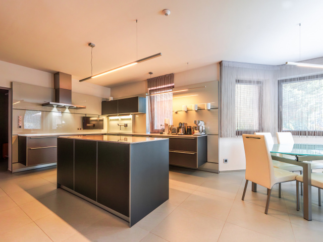 Prízemie vily pozostáva z modernej kuchyne s kuchynskou linkou značky Bulthaup a so spotrebičmi značiek Miele a Gaggenau, z jedálne, priestrannej obývačky s krbom a výstupom na terasu. Súčasťou je zimná záhrada, hosťovská izba a kúpeľňa. Poschodie ponúka 5 izieb, dve kúpeľne, samostatné WC, balkón s južnou orientáciou a veľkorysý šatník. Suterén je venovaný oddychu – nájdete tu wellness so saunou pre 6–9 osôb, posilňovňu, šatník so žehliareňou, práčovňu a technické zázemie s tepelným čerpadlom Viessmann.
